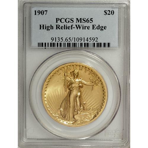 1907 $20 High Relief, Wire Rim MS65 PCGS. As usual, th