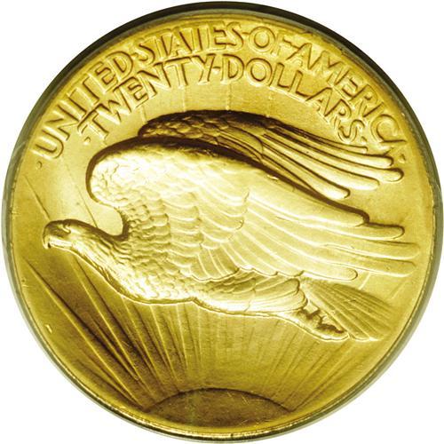 <B>1907<$20> High Relief, Wire Rim MS65 PCGS.</B></I> Even though multiple blows from a hydraulic press were required to strike Saint-Gaudens' High Relief design, that did not always guarantee a full strike. This coin, however, did strike up fully in all areas, including the Capitol Building and the upper portions of the lettering near the reverse rim. And speaking of the rim, each side shows a high wire rim. While this is an accidental part of the minting process, and thought by Mint personnel to be a defect (thus the Flat Rim variant), from the point of view of modern collectors the wire rim adds an extra bit of visual interest to this magnificently designed coin. The fully developed features give a three-dimensional quality to the coin that is quite unlike any other United States coin, the only exception being the 1921 Peace dollar. Swirling die polish lines are seen in the fields, as always, and the coin has bright yellow-gold coloration with just the slightest accent of reddish patina present. The only surface blemishes of note are a couple of tiny pinprick marks located at 8 and 9 o'clock on the reverse rim. <BR><BR><B>Important notice:</B> Heritage usually auctions material at the rate of 200-250 lots per hour. On some occasions eBay Live bid software or the Internet may not be able to keep up with the pace of the auction. We recommend placing a realistic absentee bid now as insurance to avoid disappointment. Occasionally the auctioneer may eliminate or reject an eBay Live bid, and the auctioneer may also reopen a lot after the close of the eBay live bidding (usually because we missed an audience bid), and may reject your bid even if it shows you as the winning bidder. By bidding via eBay Live, you agree that Heritage may award the lot to another bidder at its sole discretion under the circumstances described above or any other reasonable circumstances. Since eBay bids are not shown to us until we open the lot on the floor, we treat those bids just like floor bids. In most cases the floor responds before the eBay bid is presented to us, due to Internet lag time, so for consistency we have made it a policy that floor bids are always considered first over tie eBay live bids. Also please note that all Heritage lots purchased through eBay Live carry a 20% Buyer's Premium. Please make sure you read the Terms and Conditions before you bid. This lot is being auctioned in conjunction with a live floor auction by Heritage Galleries & Auctioneers. All final auction and invoice information will be supplied by Heritage Galleries & Auctioneers, and all other information should be considered preliminary. Lot:4506 <BR><BR><B>Winning Notification and Billing:</B> After the FINAL session in this auction is complete, Heritage will send e-mail and snail mail invoices. This process normally takes several days. All final auction and invoice information will be supplied by Heritage Galleries & Auctioneers, and all other information should be considered preliminary. <BR><BR>This auction will be conducted on a live auction floor and over the Internet through eBay Live. If you choose to place an absentee bid, please take a moment to <font color='#0000ff'><u><a href='http://pages.ebay.com/liveauctions/help/before/laabsentee.html'>learn how eBay Live absentee bidding works</a></u></font><font color='#000000'>