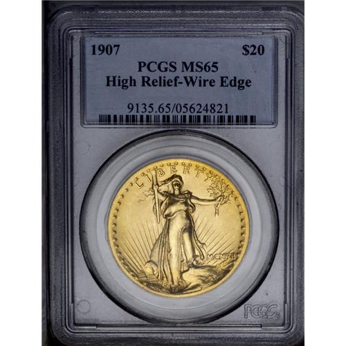 1907 $20 High Relief, Wire Rim MS65 PCGS. Even though