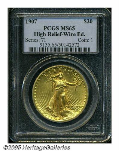 1907 $20 High Relief, Wire Rim MS65 PCGS. The Hig