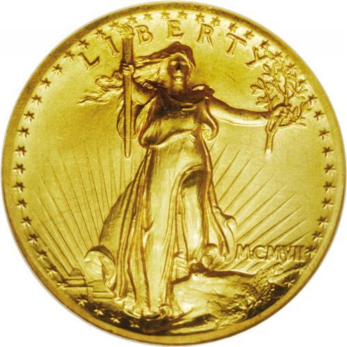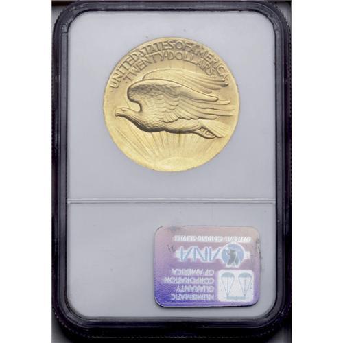 <B>1907<$20> High Relief, Wire Rim PR65 NGC.</B></I> A magnificent Gem example of this popular and beautiful coin. The surfaces are excellent. Close examination will find faint hairlines with careful scrutiny, which apparently account for the grade. A couple of tiny ticks can also be found, but the delicate fields and devices retain the familiar swirl lines from die polishing seen on all specimens from these dies. Carefully preserved, enough to keep the delicate Wire Rim intact, a feature often lacking on inferior examples. The Wire Rim was created during the extreme striking pressures which forced up a tiny sliver of gold between the coin and the collar that held the dies. Mint workers sometimes called this feature a "fin," others have used the term "knife rim," all of which refer to the same thing.<BR> The Philadelphia Mint had to strike these several times in order to bring up the design fully. The dies were engraved with far greater depth than normal for a regular issue coin, and these were more characteristic of a medal than a coin for circulation. Note the three-dimensional effect of the devices, both on Liberty and on the eagle's wing, design elements which seemingly extend well beyond the surface of the coin. Liberty has the appearance of literally walking off the coin toward the viewer. No other American coin has ever come close to the technical achievement or the visual appeal of this design. While these may be slightly less dramatic than the handful of Ultra High Relief examples coined, those are all but unobtainable for most collectors. The present coin, while certainly costing a considerable sum, is far more obtainable by comparison. While NGC considers the present coin to be a proof, PCGS prefers to call most of these High Relief coins a regular business strike instead. The exact method of manufacture involved many steps similar to the proof process for coinage, and a valid argument can be made to support either theory. What is important is that this is a s <BR><BR><B>Important notice:</B> Heritage usually auctions material at the rate of 200-250 lots per hour. On some occasions eBay Live bid software or the Internet may not be able to keep up with the pace of the auction. We recommend placing a realistic absentee bid now as insurance to avoid disappointment. Occasionally the auctioneer may eliminate or reject an eBay Live bid, and the auctioneer may also reopen a lot after the close of the eBay live bidding (usually because we missed an audience bid), and may reject your bid even if it shows you as the winning bidder. By bidding via eBay Live, you agree that Heritage may award the lot to another bidder at its sole discretion under the circumstances described above or any other reasonable circumstances. Since eBay bids are not shown to us until we open the lot on the floor, we treat those bids just like floor bids. In most cases the floor responds before the eBay bid is presented to us, due to Internet lag time, so for consistency we have made it a policy that floor bids are always considered first over tie eBay live bids. Also please note that all Heritage lots purchased through eBay Live carry a 20% Buyer's Premium. Please make sure you read the Terms and Conditions before you bid. This lot is being auctioned in conjunction with a live floor auction by Heritage Galleries & Auctioneers. All final auction and invoice information will be supplied by Heritage Galleries & Auctioneers, and all other information should be considered preliminary. Lot:4508 <BR><BR><B>Winning Notification and Billing:</B> After the FINAL session in this auction is complete, Heritage will send e-mail and snail mail invoices. This process normally takes several days. All final auction and invoice information will be supplied by Heritage Galleries & Auctioneers, and all other information should be considered preliminary. <BR><BR>This auction will be conducted on a live auction floor and over the Internet through eBay Live. If you choose to place an absentee bid, please take a moment to <font color='#0000ff'><u><a href='http://pages.ebay.com/liveauctions/help/before/laabsentee.html'>learn how eBay Live absentee bidding works</a></u></font><font color='#000000'>