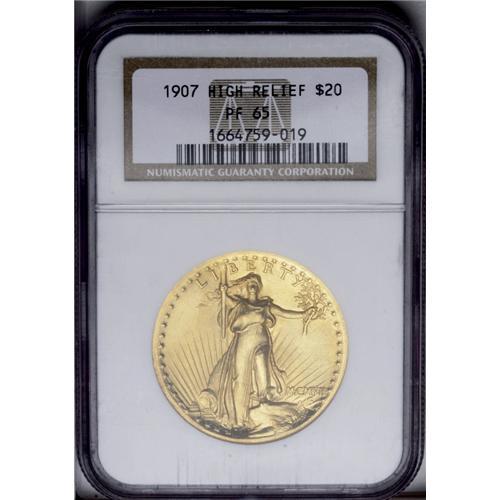 1907 $20 High Relief, Wire Rim PR65 NGC. A magnificent