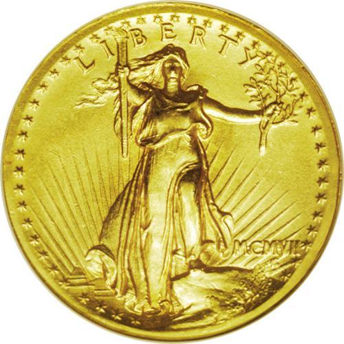 <B>1907<$20> High Relief, Wire Rim--Repaired--ANACS. MS60 Details.</B></I> Wire Rim (although not listed as such on the ANACS holder). A pleasing example of this popular and highly desirable one-year type. The surfaces show satiny mint luster and there are remarkably few abrasions for the MS60 net grade level. Apparent "smoothing" is noted along the lower right obverse rim, below and to the right of the date.