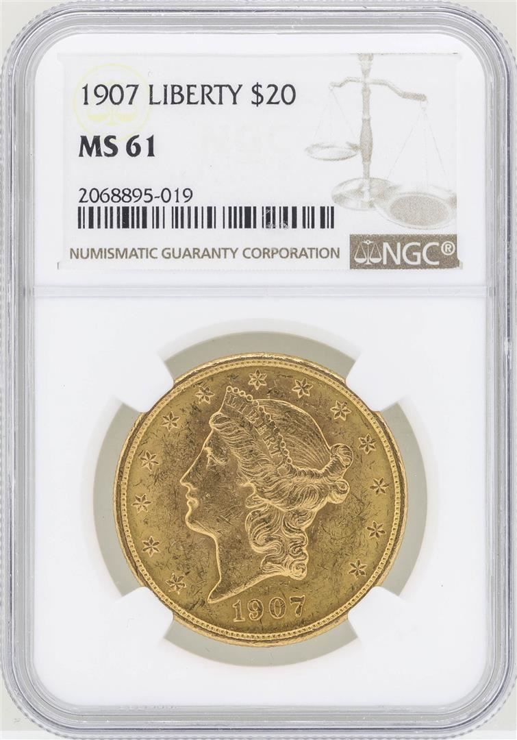 One 1907 $20 Liberty Head Double Eagle Gold Coin NGC MS61. NGC Certified.