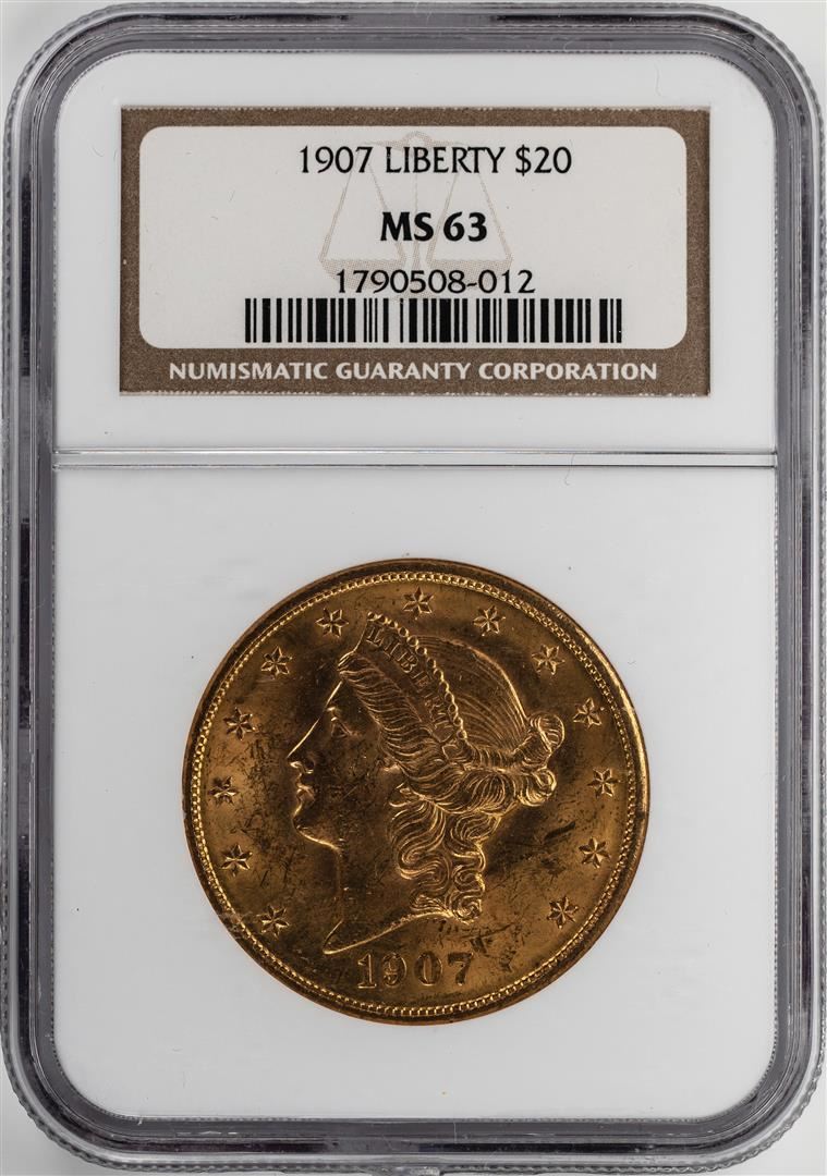 One 1907 $20 Liberty Head Double Eagle Gold Coin NGC MS63. NGC Certified.