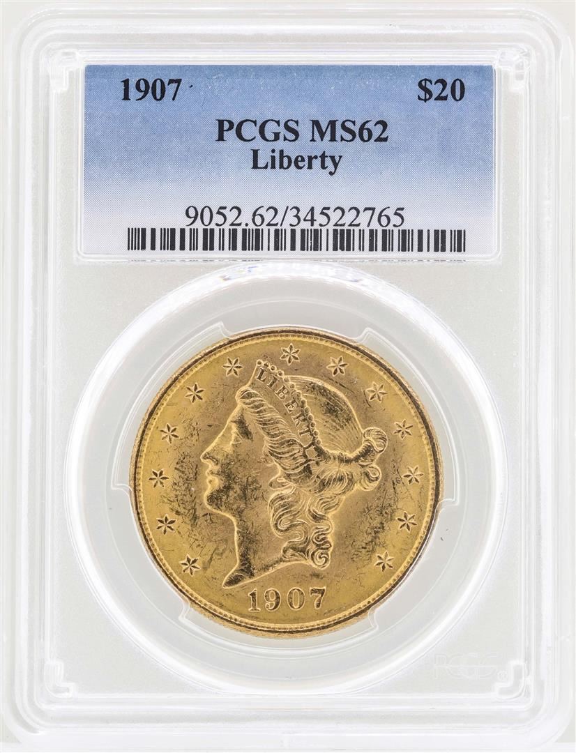 One 1907 $20 Liberty Head Double Eagle Gold Coin PCGS MS62. PCGS Graded.