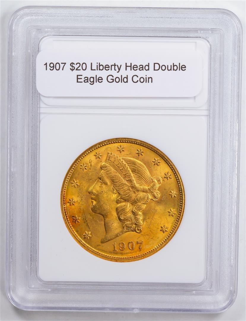 One 1907 $20 Liberty Head Double Eagle Gold Coin.