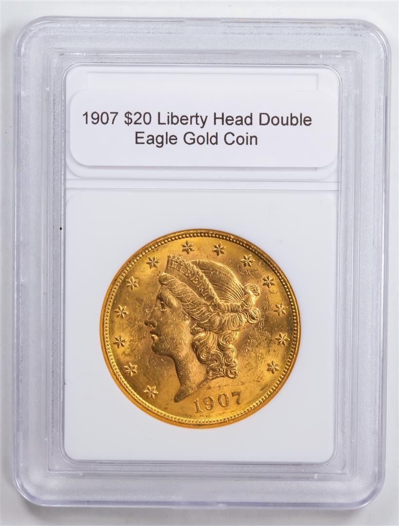 One 1907 $20 Liberty Head Double Eagle Gold Coin.