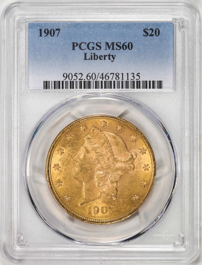 One 1907 $20 Liberty Head Eagle Gold Coin PCGS MS60. PCGS Graded.
