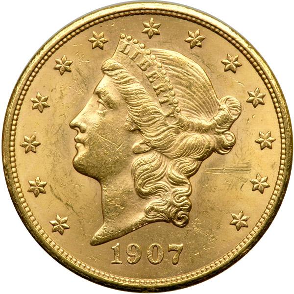 1907 $20 Liberty. MS-60. Small obverse scuff in the right field.