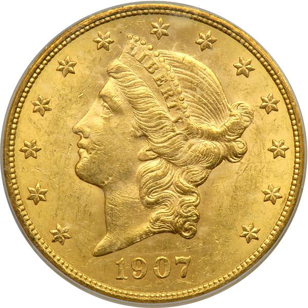 1907 $20 Liberty. ICG graded MS-62. Lustrous as it beams out golden color.