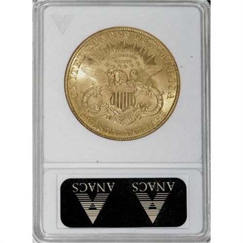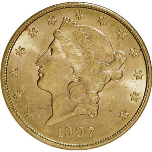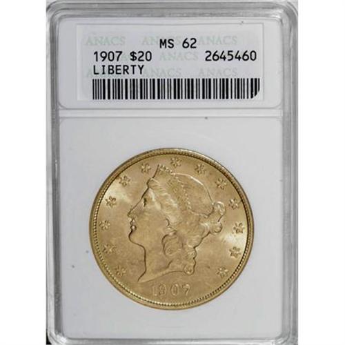 <B>1907 $20 MS62 ANACS.</B></I> NGC Census: (9445/5261). PCGS Population (7102/3637). Mintage: 1,451,864. Numismedia Wsl. Price for NGC/PCGS coin in MS62: $770. (#9052)<BR><BR><B>Coin Engraver:</B> James B. Longacre<BR><BR><b>Shipping:</b> Coins & Currency (<a target="_blank" href="http://www.heritageauctions.com/common/shipping.php">view shipping information</a>\)