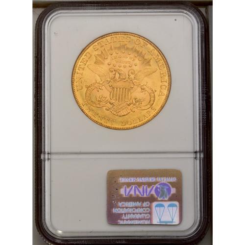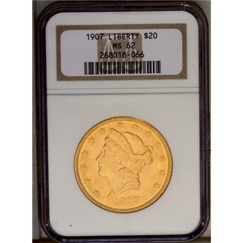 1907 $20 MS62 NGC. Nicely struck, with bright apricot- 1907