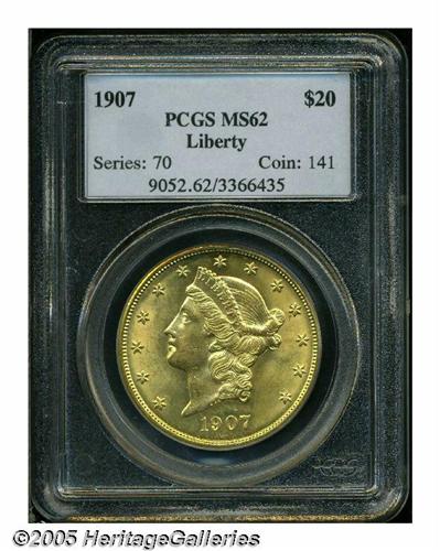 <B>1907<$20> MS62 PCGS.</B></I> Booming luster and relatively unmarked surfaces confirm the charm of this final year Liberty Double Eagle.