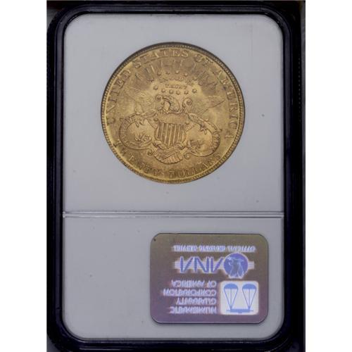 <B>1907<$20> MS63 NGC.</B></I> An important Mint State survivor from this transitional year in double eagle production, the surfaces are possessed of bold definition and somewhat muted green-golden luster. The scattered contact marks typify the assigned grade. <BR><BR><B>Important notice:</B> Heritage usually auctions material at the rate of 200-250 lots per hour. On some occasions eBay Live bid software or the Internet may not be able to keep up with the pace of the auction. We recommend placing a realistic absentee bid now as insurance to avoid disappointment. Occasionally the auctioneer may eliminate or reject an eBay Live bid, and the auctioneer may also reopen a lot after the close of the eBay live bidding (usually because we missed an audience bid), and may reject your bid even if it shows you as the winning bidder. By bidding via eBay Live, you agree that Heritage may award the lot to another bidder at its sole discretion under the circumstances described above or any other reasonable circumstances. Since eBay bids are not shown to us until we open the lot on the floor, we treat those bids just like floor bids. In most cases the floor responds before the eBay bid is presented to us, due to Internet lag time, so for consistency we have made it a policy that floor bids are always considered first over tie eBay live bids. Also please note that all Heritage lots purchased through eBay Live carry a 20% Buyer's Premium. Please make sure you read the Terms and Conditions before you bid. This lot is being auctioned in conjunction with a live floor auction by Heritage Galleries & Auctioneers. All final auction and invoice information will be supplied by Heritage Galleries & Auctioneers, and all other information should be considered preliminary. Lot:4495 <BR><BR><B>Winning Notification and Billing:</B> After the FINAL session in this auction is complete, Heritage will send e-mail and snail mail invoices. This process normally takes several days. All final auction and invoice information will be supplied by Heritage Galleries & Auctioneers, and all other information should be considered preliminary. <BR><BR>This auction will be conducted on a live auction floor and over the Internet through eBay Live. If you choose to place an absentee bid, please take a moment to <font color='#0000ff'><u><a href='http://pages.ebay.com/liveauctions/help/before/laabsentee.html'>learn how eBay Live absentee bidding works</a></u></font><font color='#000000'>