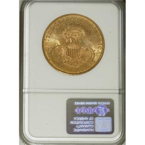 <B>1907 $20 MS63 NGC.</B></I> NGC Census: (4772/532). PCGS Population (3162/625). Mintage: 1,451,864. Numismedia Wsl. Price for NGC/PCGS coin in MS63: $890. (#9052)<BR><BR><B>Coin Engraver:</B> James B. Longacre<BR><BR><b>Shipping:</b> Coins & Currency (<a target="_blank" href="http://www.heritageauctions.com/common/shipping.php">view shipping information</a>)