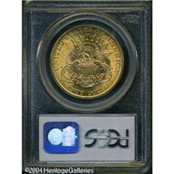 1907 $20 MS64 PCGS. This double eagle possesses be <B>1907 $20 MS64 PCGS.</B></I> This double eagle possesses beautiful, bright apricot-gold surfaces and flashy luster. The design elements are well impressed, further enhancing the coin's eye appeal. A few minute obverse contact marks preclude a higher grade. <BR><BR><B>Important notice:</B> Heritage usually auctions material at the rate of 200-250 lots per hour. On some occasions eBay Live bid software or the Internet may not be able to keep up with the pace of the auction. We recommend placing a realistic absentee bid now as insurance to avoid disappointment. Occasionally the auctioneer may eliminate or reject an eBay Live bid, and the auctioneer may also reopen a lot after the close of the eBay live bidding (usually because we missed an audience bid), and may reject your bid even if it shows you as the winning bidder. By bidding via eBay Live, you agree that Heritage may award the lot to another bidder at its sole discretion under the circumstances described above or any other reasonable circumstances. Since eBay bids are not shown to us until we open the lot on the floor, we treat those bids just like floor bids. In most cases the floor responds before the eBay bid is presented to us, due to Internet lag time, so for consistency we have made it a policy that floor bids are always considered first over tie eBay live bids. Also please note that all Heritage lots purchased through eBay Live carry a 20% Buyer's Premium. Please make sure you read the Terms and Conditions before you bid. This lot is being auctioned in conjunction with a live floor auction by Heritage Galleries & Auctioneers. All final auction and invoice information will be supplied by Heritage Galleries & Auctioneers, and all other information should be considered preliminary. Lot:7063