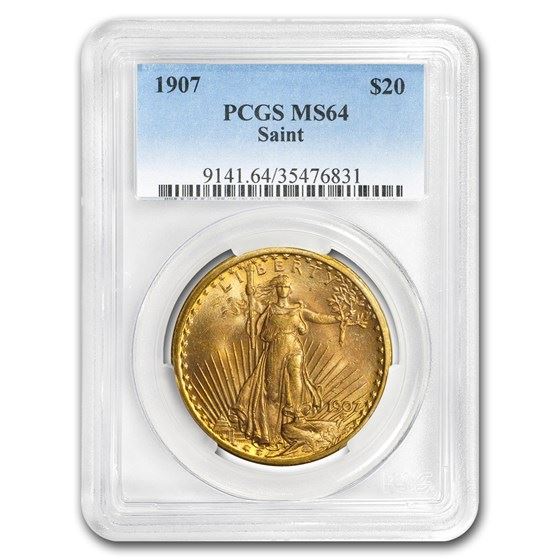 One piece 1907 $20 Saint-Gaudens Gold Double Eagle MS-64 PCGS