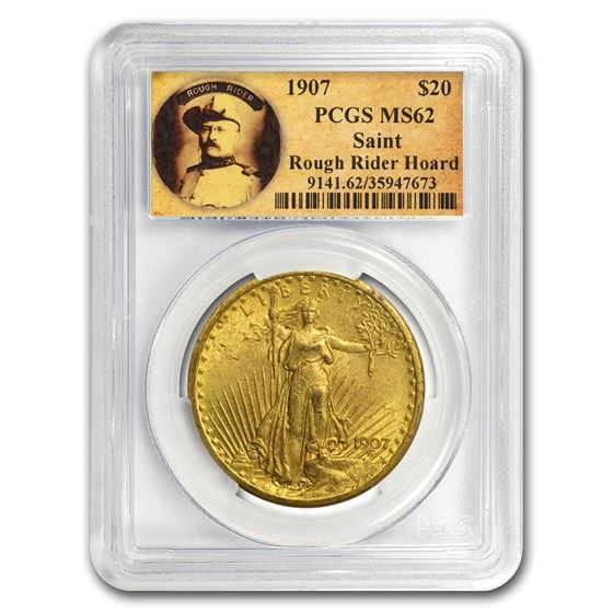 One piece 1907 $20 Saint-Gaudens Gold No Motto MS-62 PCGS (Rough Rider)