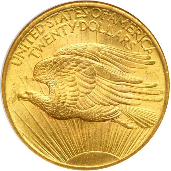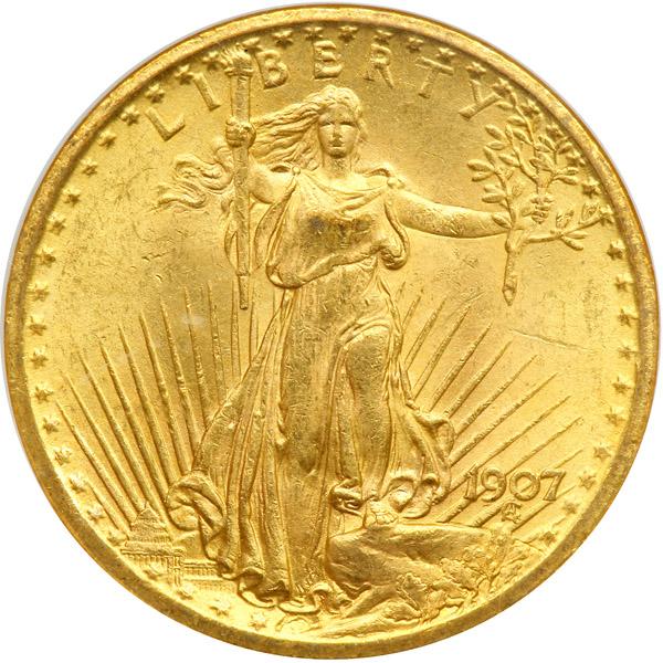 1907 $20 St. Gaudens. Flat relief. NGC graded MS-63. Delicate antique golden toning (PCGS # 9141) .