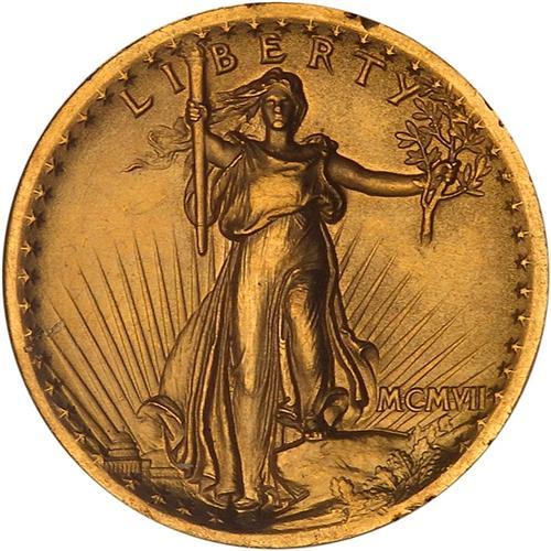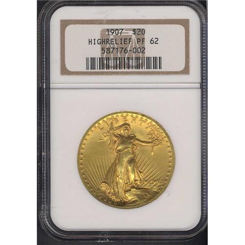 1907 $20 St. Gaudens. High Relief, Flat Rim NGC PR62