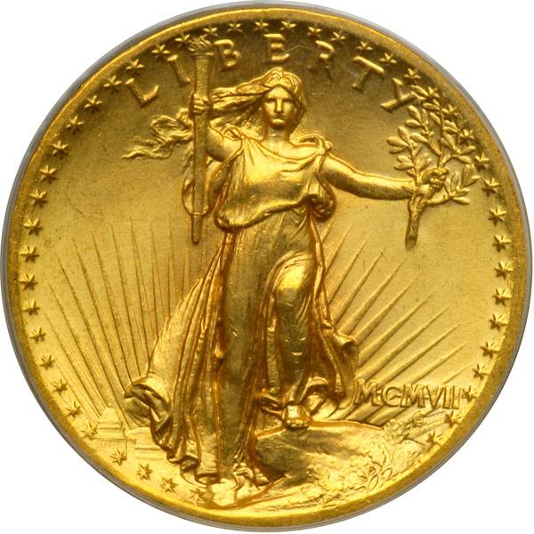 1907 $20 St. Gaudens. High Relief, Flat Rim