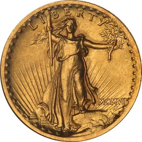 1907 $20 St. Gaudens. High Relief, Wire Rim NGC MS64