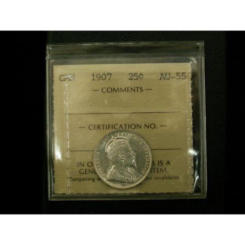 1907 25¢ ICCS AU55, Lots of lustre and white in colour