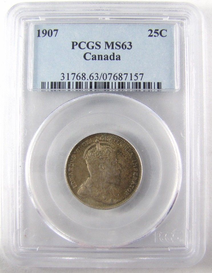 1907 25¢ PCGS MS63. Attractive Green Shades.