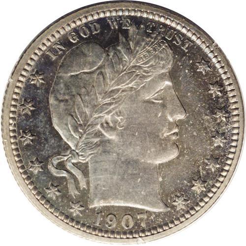 <B>1907<25C> PR66 PCGS.</B></I> Deep smoky toning occurs over each side of this masterfully preserved Premium Gem proof. Dark violet and electric-blue coloration is seen on the obverse, while the reverse features apricot-gold, ruby-red, and sea-green patina. The striking details are a bit soft on the eagle's right (facing) talons and arrow fletchings, and on a few of the obverse stars, but no distracting hairlines or contact marks are in evidence, on either side of the piece. Housed in a first-generation holder from PCGS.