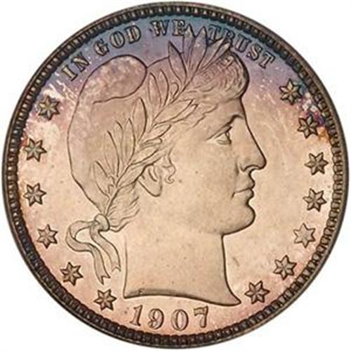 A Barber quarter with excellent flash and eye appeal, though counting the few light hairlines underneath the natural toning, we tend to want to assign it a Proof 65 grade the same as ICG’s “Proof 65” designation. But you be the judge by paying for it exactly what it is worth! Proof mintage was only 575 pieces.