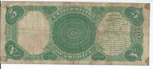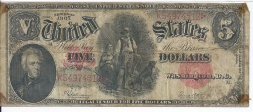 1907 $5.00 Legal Tender Andrew Jackson/Woodchopper VG