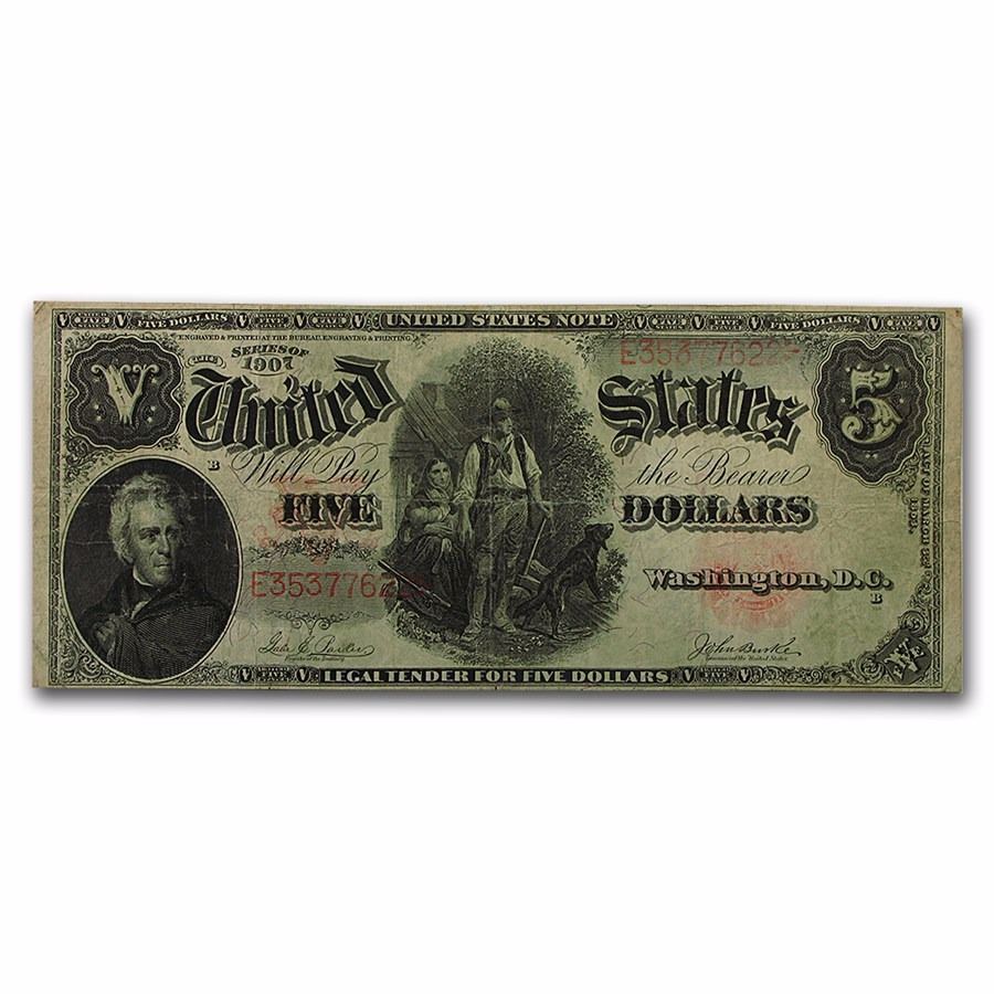 1907 $5.00 Legal Tender Andrew Jackson/Woodchopper VG