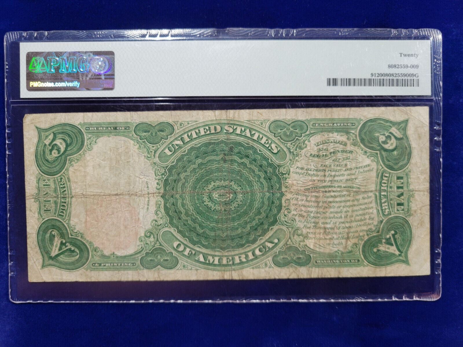 1907 $5.00 Legal Tender Note Woodchopper VF 20 PMG