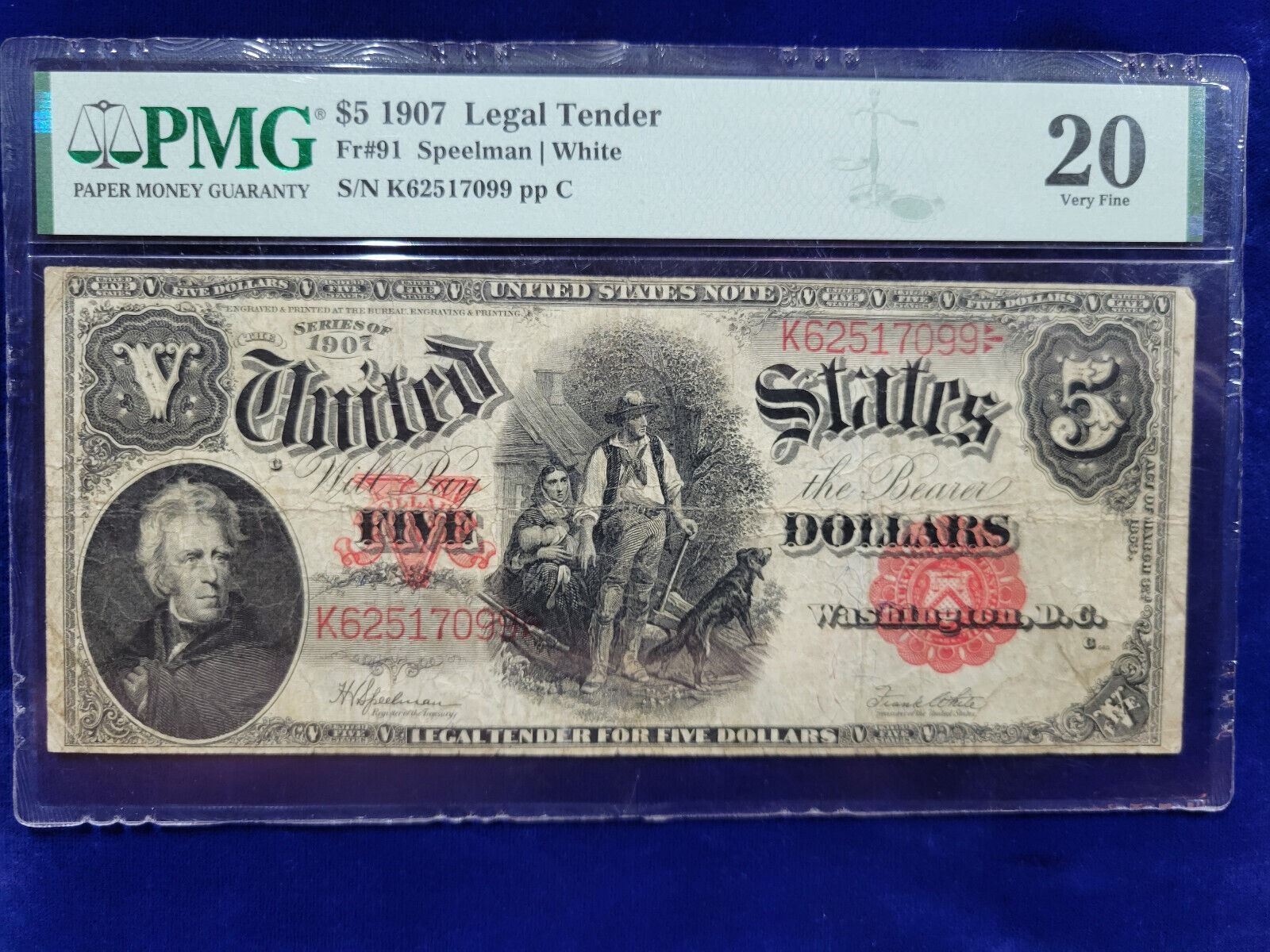 1907 $5.00 Legal Tender Note Woodchopper VF 20 PMG