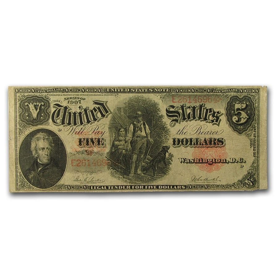 1907 $5.00 Legal Tender Woodchopper VF (Fr#84)