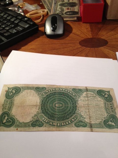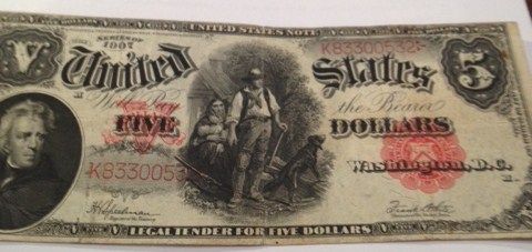 1907 $5 FIVE DOLLAR LEGAL TENDER NOTE WOODCHOPPER