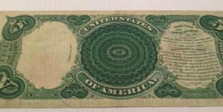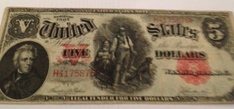 1907 $5 FIVE DOLLAR LEGAL TENDER NOTE WOODCHOPPER