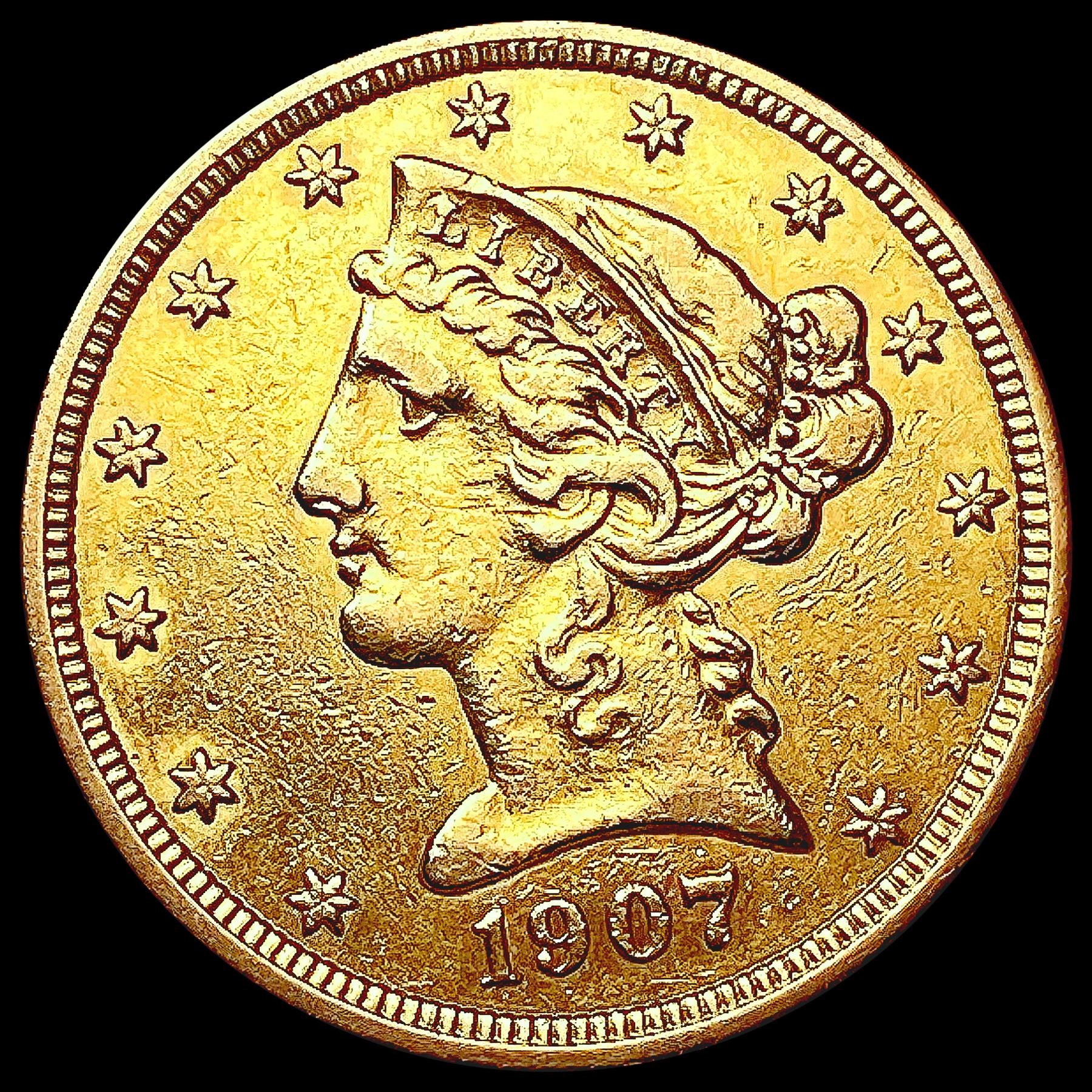1907 $5 Gold Half Eagle NEARLY UNCIRCULATED