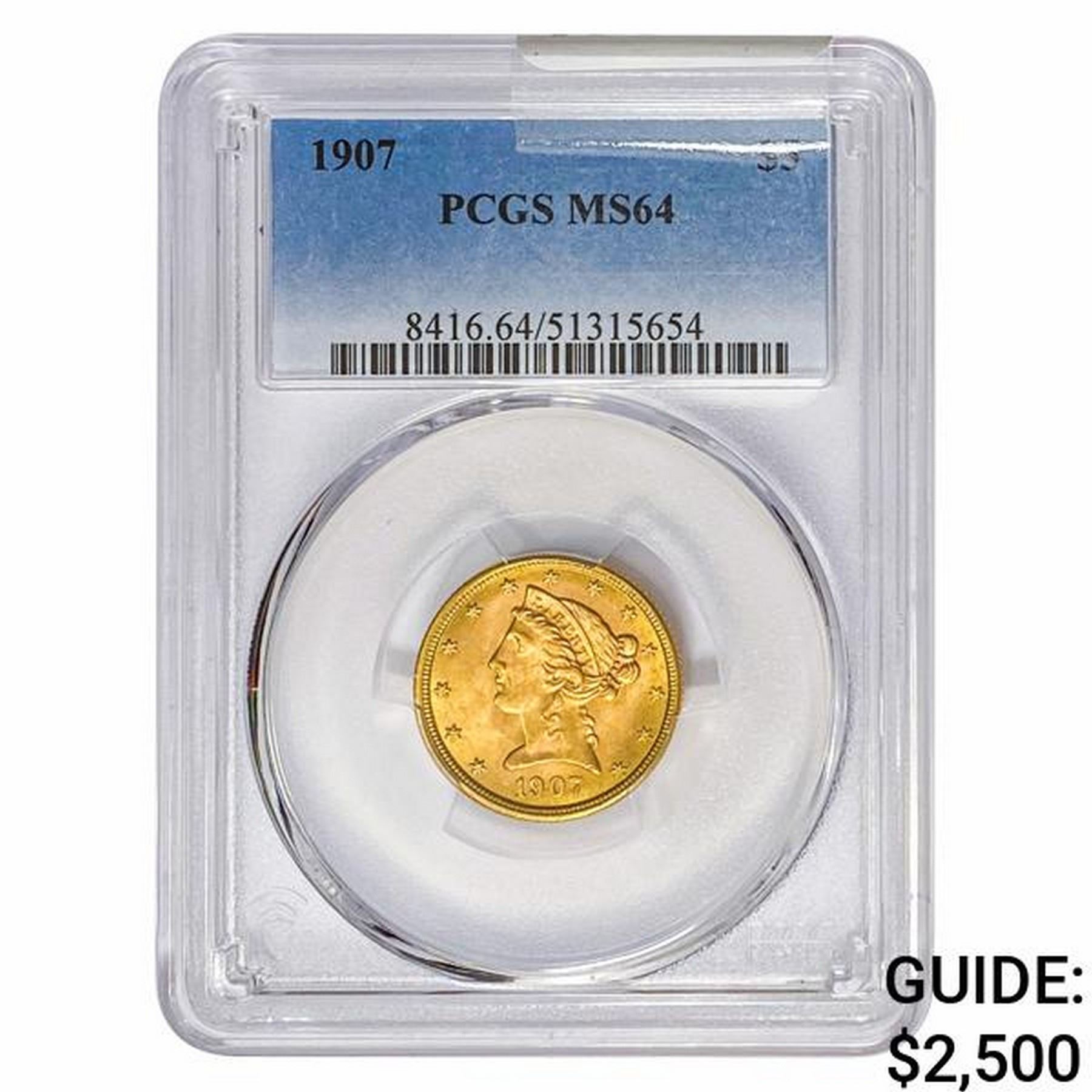 1907 $5 Gold Half Eagle PCGS MS64