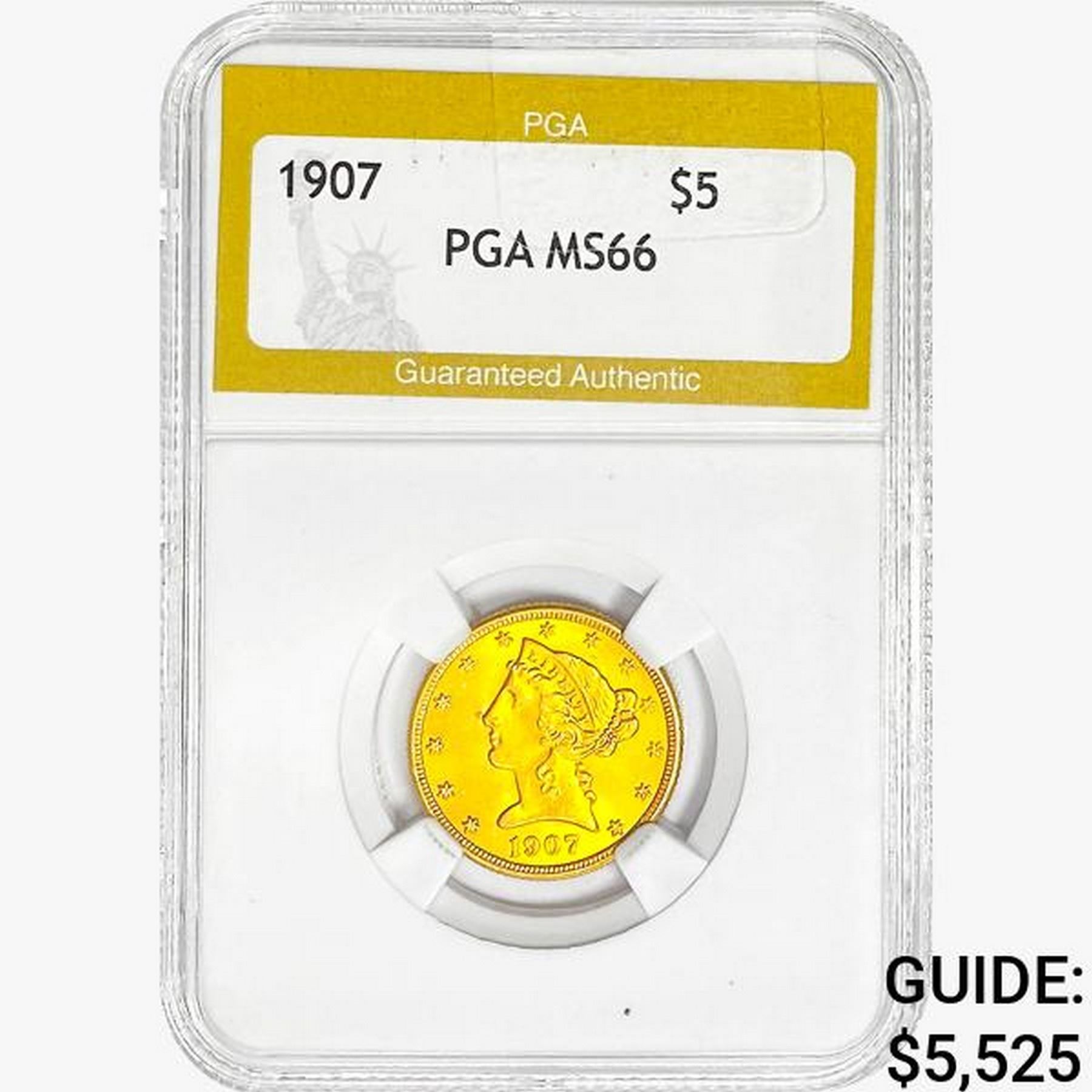 1907 $5 Gold Half Eagle PGA MS66