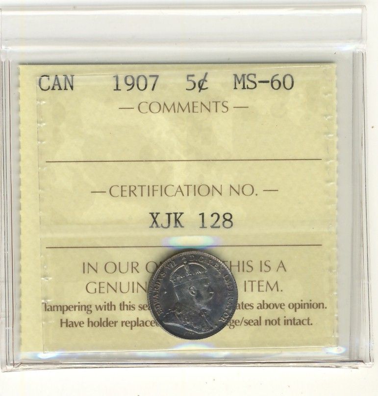 1907 5¢ ICCS MS60.