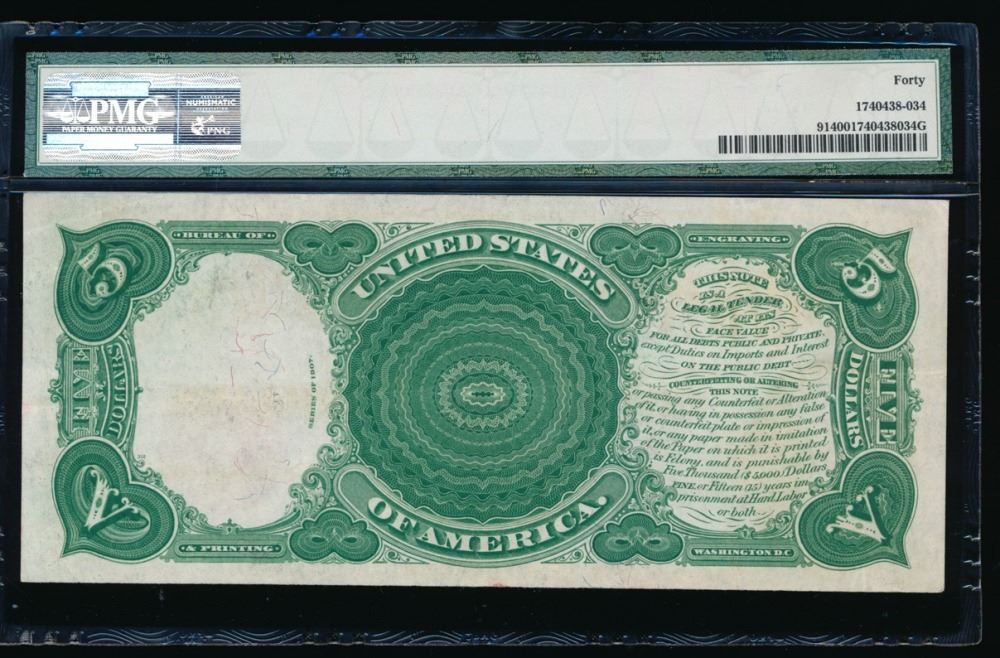 One 1907 $5 Large Legal Tender Note PMG 40.