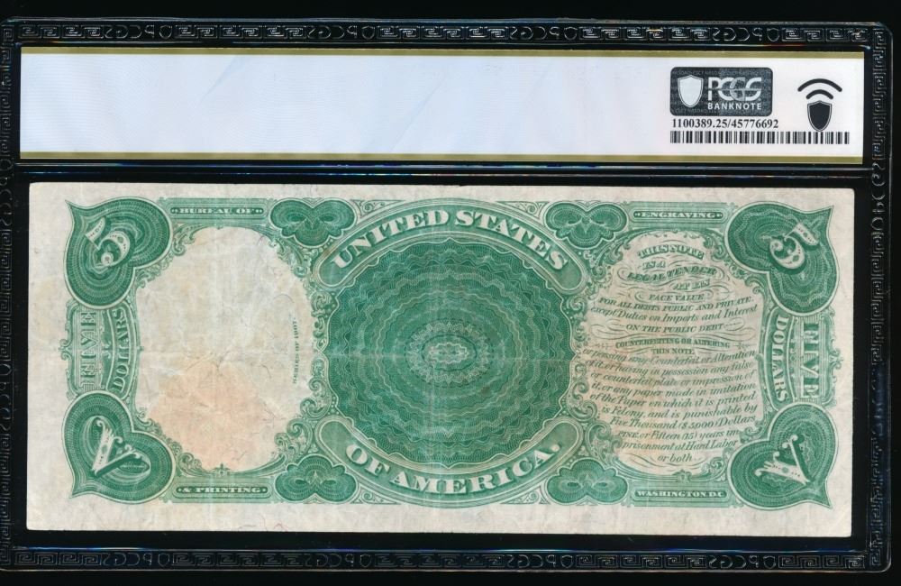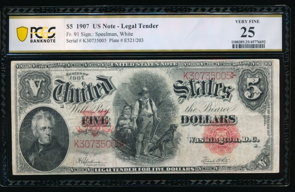 One 1907 $5 Legal Tender Note PCGS 25.