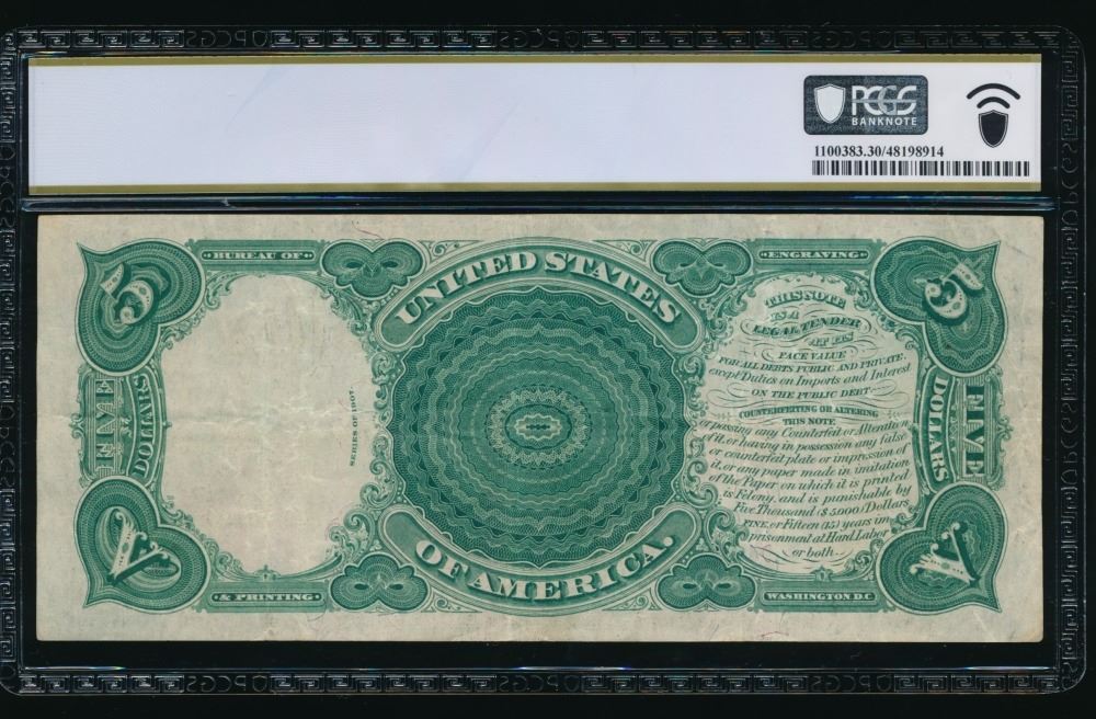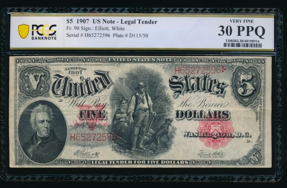 One 1907 $5 Legal Tender Note PCGS 30PPQ.