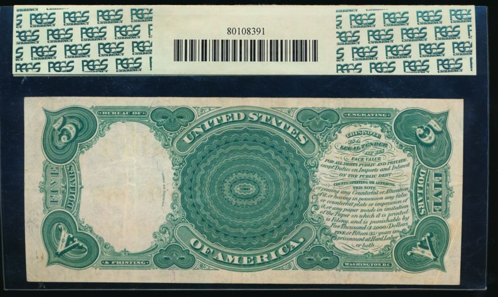 One 1907 $5 Legal Tender Note PCGS 35.