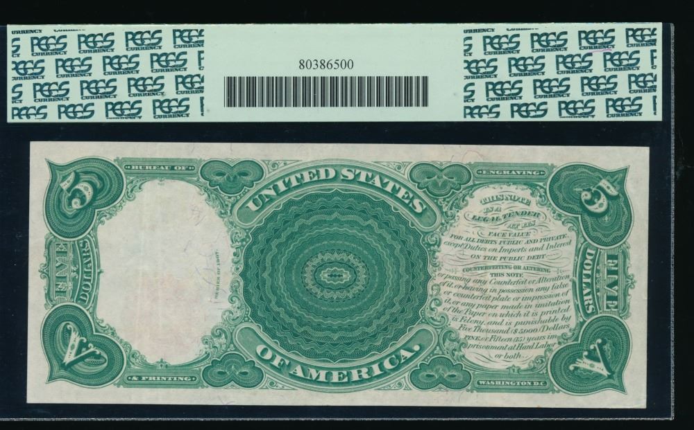 One 1907 $5 Legal Tender Note PCGS 40PPQ.