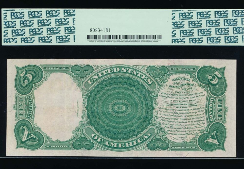 One 1907 $5 Legal Tender Note PCGS 45PPQ.