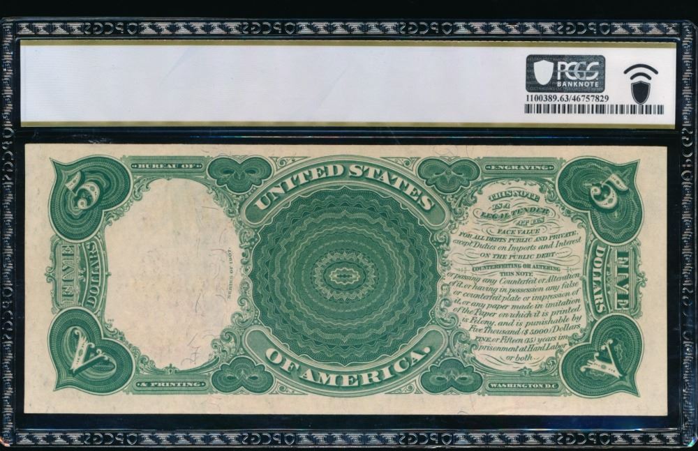 One 1907 $5 Legal Tender Note PCGS 63.