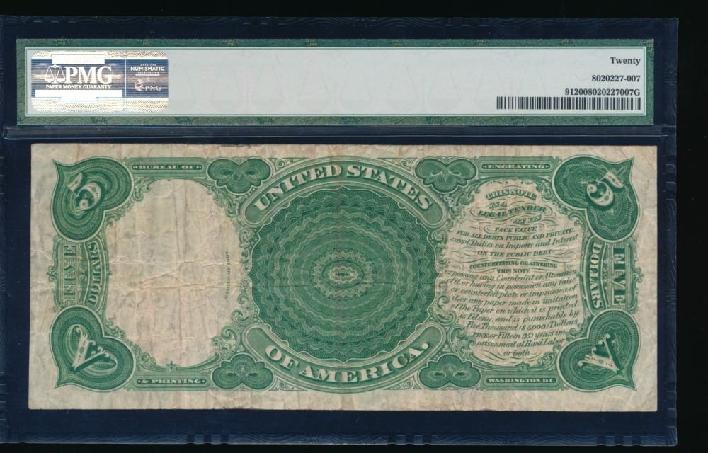 One 1907 $5 Legal Tender Note PMG 20.